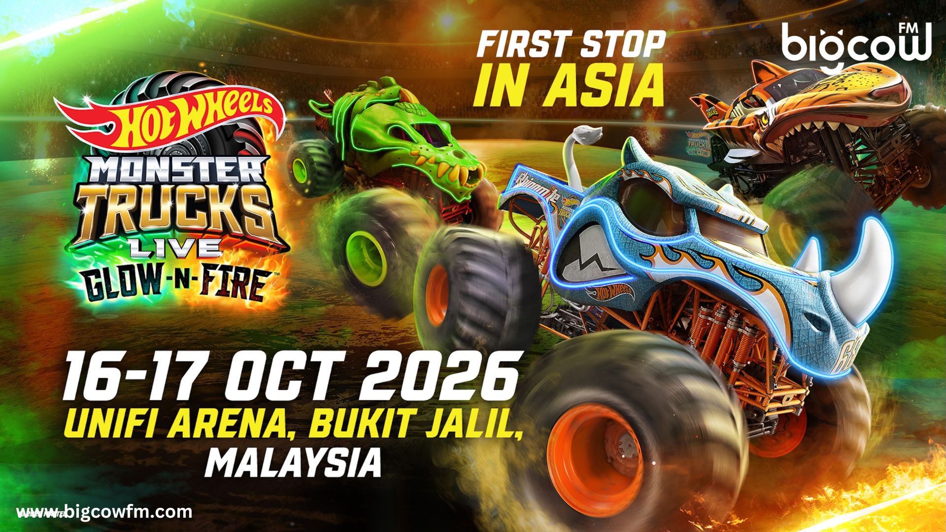 You are currently viewing Hot Wheels Monster Trucks Live™: Glow-N-Fire 驶入亚洲! 马来西亚为亚洲巡演首站,点燃超巨型怪兽卡车震撼体验